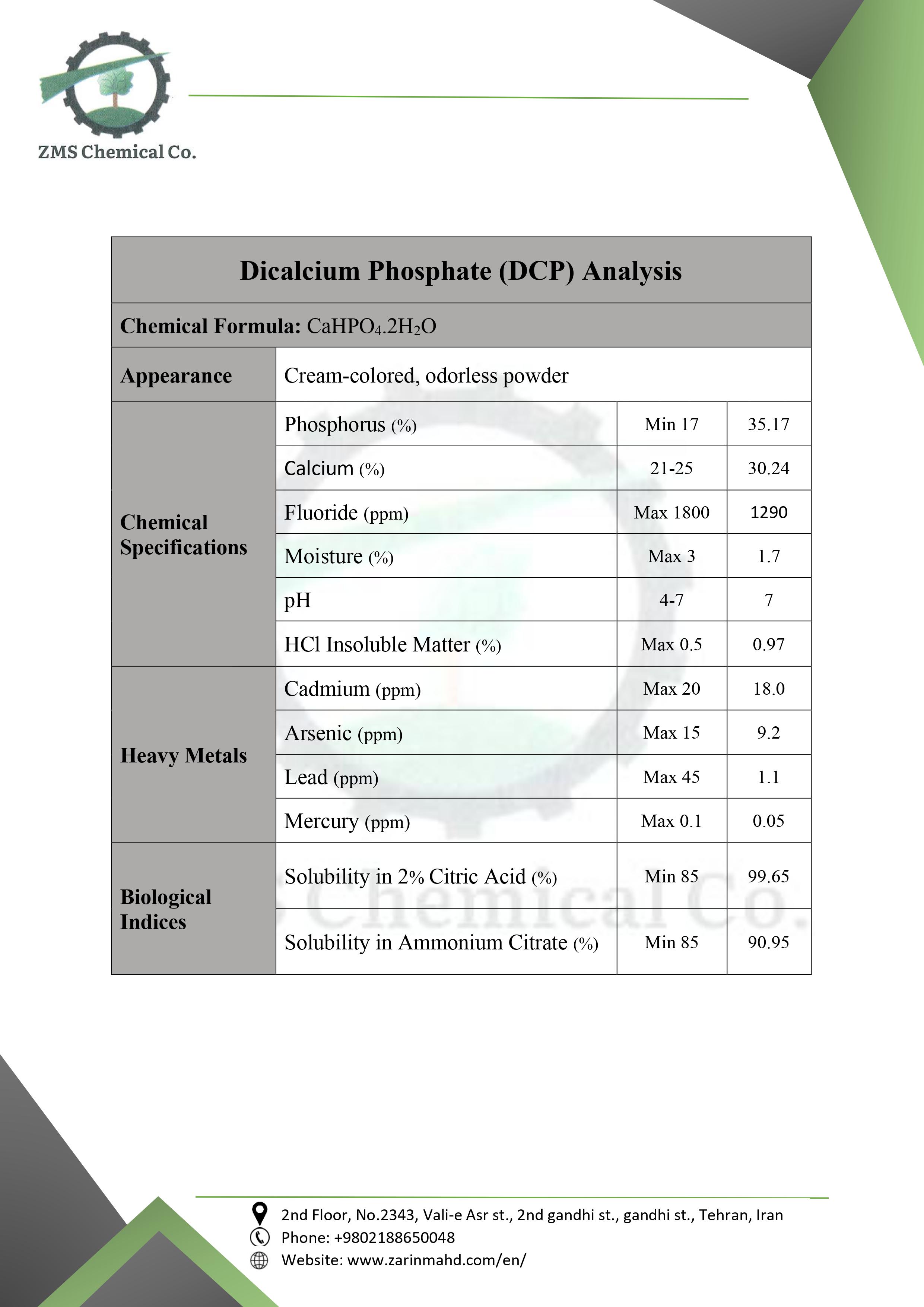 At Zarrin Mahd Shimi, we are committed to providing high-quality DCP that meets the stringent requirements of the animal feed industry. Our DCP is produced under strict quality control measures, ensuring consistent purity, particle size, and nutrient content.